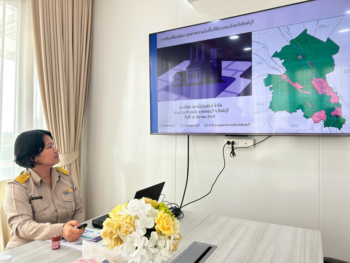 วันจันทร์ที่ 16 มีนาคม 2569 เวลา 10.00 น. สำนักงานอุตสาหกรรมจังหวัดสิงห์บุรีบูรณาการร่วมกับจังหวัดสิงห์บุรี และอำเภอพรหมบุรี ลงพื้นที่รับฟังปัญหา อุปสรรค ข้อเสนอแนะ ต่อการลงทุนสร้างโรงงานอุตสาหกรรมในเขตพื้นที่สีม่วง ต.บ้านหม้อ อ.พรหมบุรี จ.สิงห์บุรี เพื่อนำข้อมูลไปขับเคลื่อนการพัฒนาอุตสาหกรรม ส่งเสริมการลงทุนภาคโรงงานอุตสาหกรรมในเขตพื้นที่สีม่วงของจังหวัดสิงห์บุรี ณ บริษัท อดามัสโปรดักช์ จำกัด ตั้งอยู่ ม.2 ต.บ้านหม้อ อ.พรหมบุรี จ.สิงห์บุรี โดยมีนายวราดิศร อ่อนนุช ผู้ว่าราชการจังหวัดสิงห์บุรี เป็นประธาน