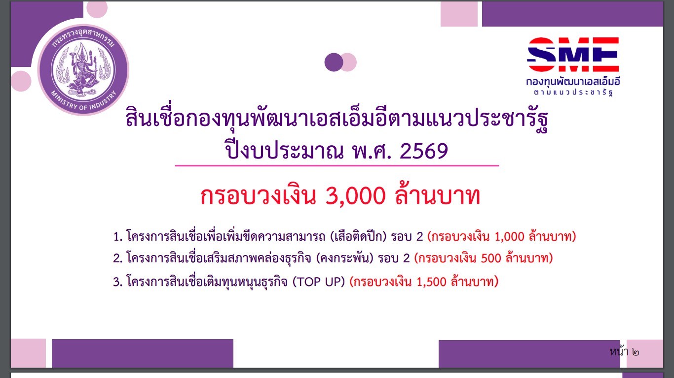 ประชุมชี้แจงแนวทางการดำเนินงานสินเชื่อกองทุนพัฒนาเอสเอ็มอีตามแนวประชารัฐ ปีงบประมาณ พ.ศ. 2569