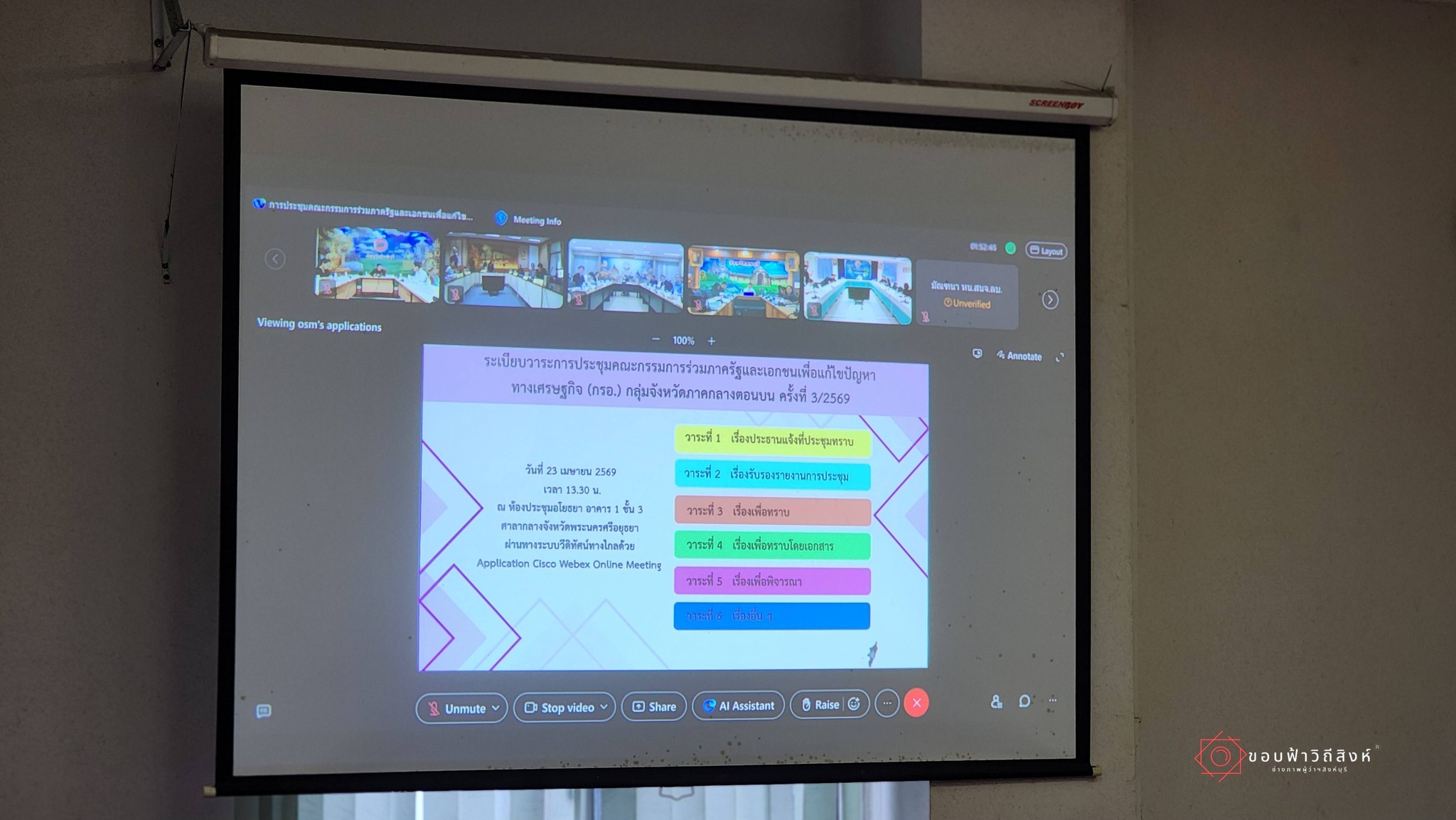 ประชุมคณะกรรมการร่วมภาครัฐและเอกชนเพื่อแก้ไขปัญหาทางเศรษฐกิจ (กรอ.) กลุ่มจังหวัดภาคกลางตอนบน ครั้งที่ 3/2569